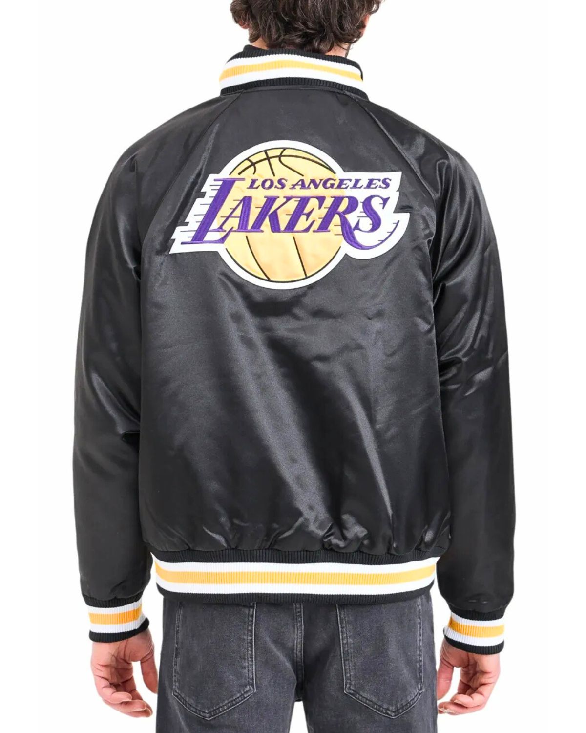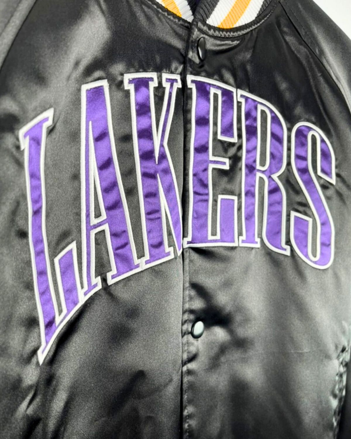Realizzata al 100% in poliestere di alta qualità, questa giacca presenta la scritta LAKERS in viola sul davanti e il logo ufficiale della squadra sul retro, per un look autentico e riconoscibile. La chiusura a bottoni aggiunge un tocco vintage in stile college, mentre la vestibilità comoda la rende perfetta per le giornate più fresche o per completare un outfit casual.