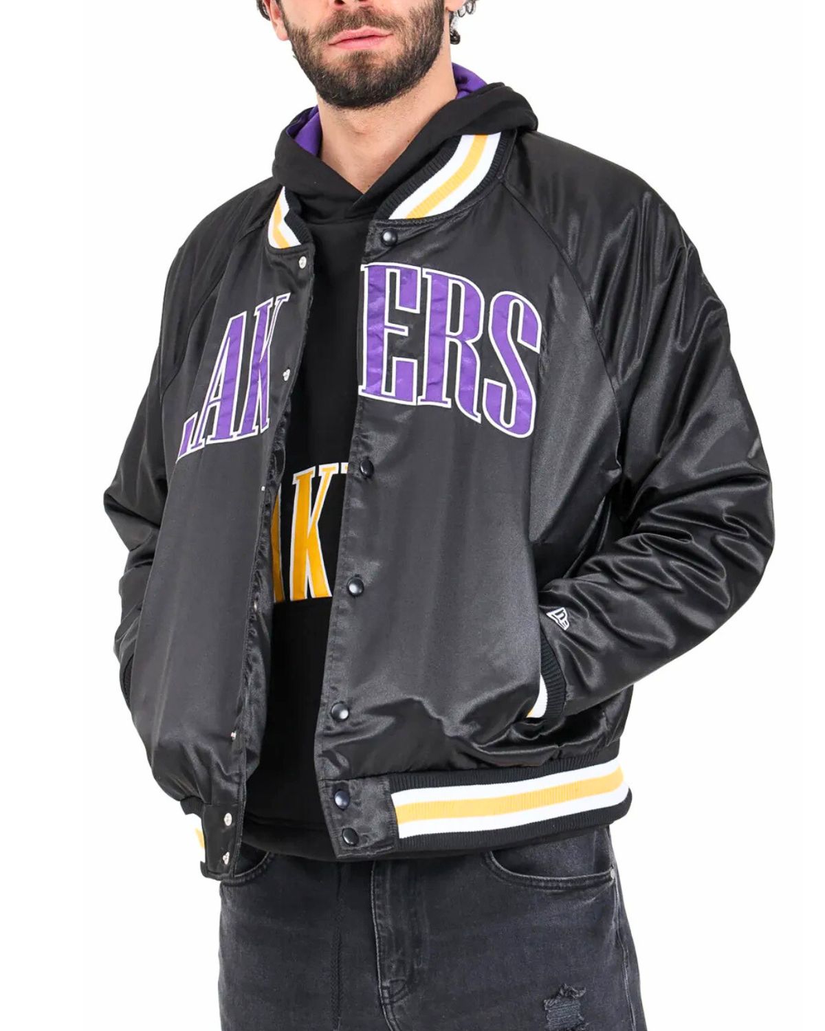 Mostra il tuo spirito da vero fan NBA con la Giacca Bomber Lakers nera di New Era, un capo iconico che unisce stile urbano, comfort premium e orgoglio sportivo.