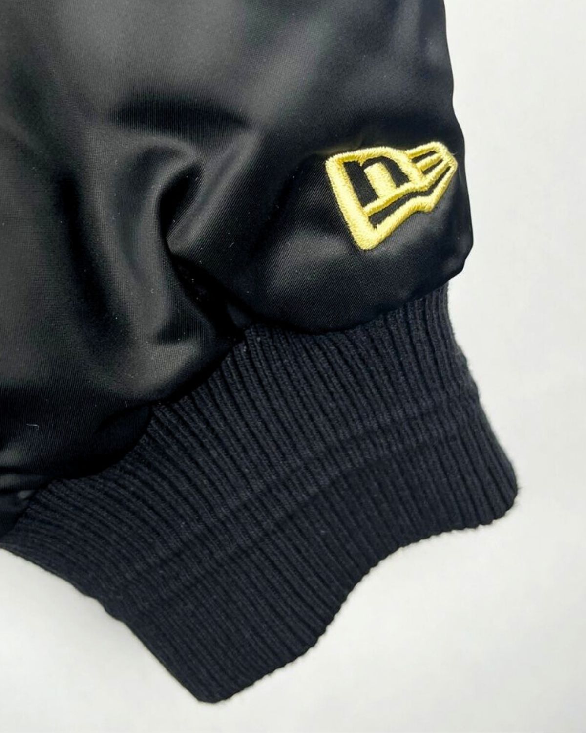 La giacca bomber New Era nera con logo ricamato in oro è un must-have per chi cerca un look urbano, deciso e di classe. Realizzata al 100% in poliestere di alta qualità, questa giacca combina design sportivo e dettagli premium, rendendola perfetta per ogni stagione.