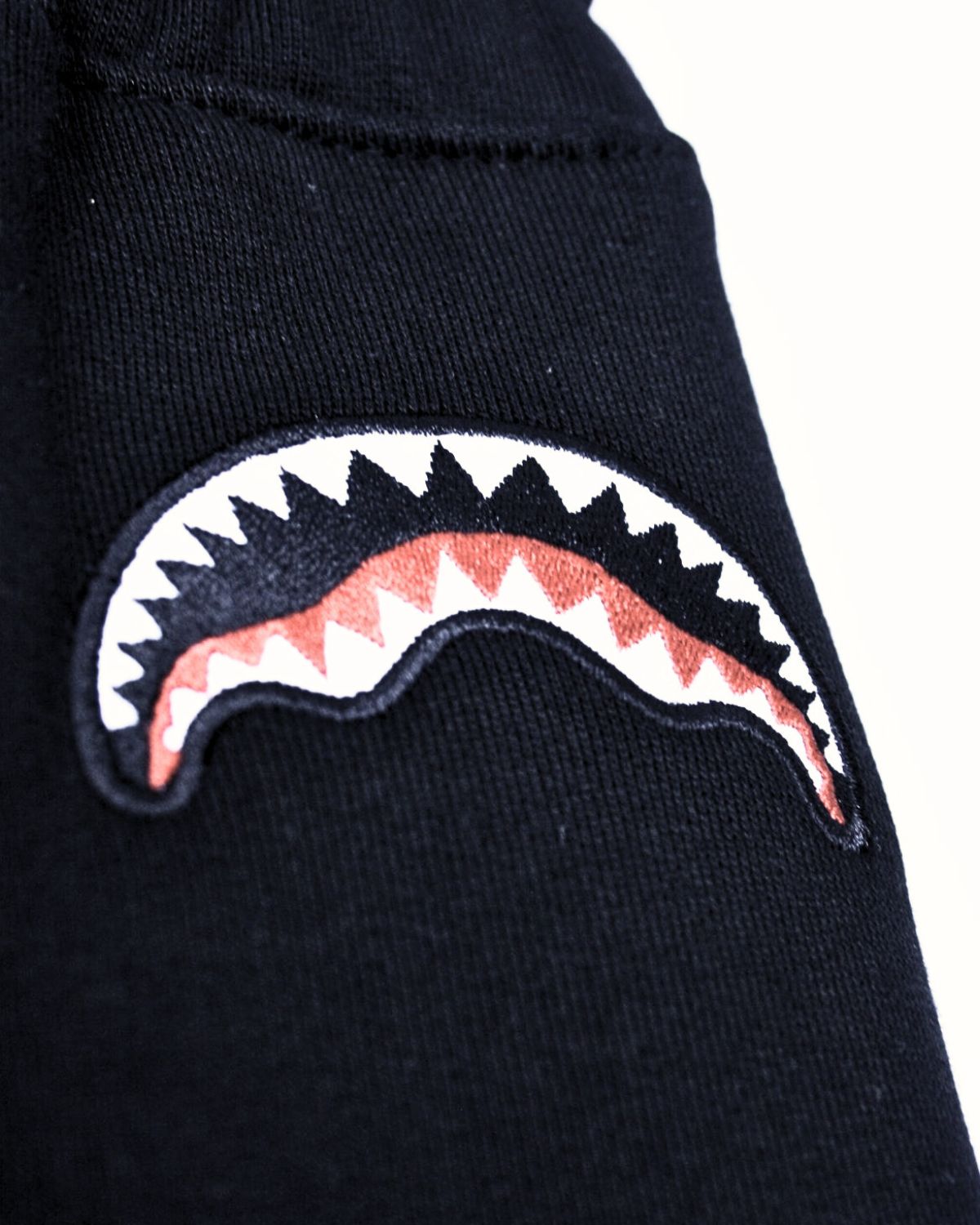 Il design minimal si arricchisce di dettagli iconici: la scritta “Sprayground” sul davanti e il celebre logo con la bocca dentata sul retro, simbolo inconfondibile del brand. Perfetti da abbinare a felpe, sneakers o t-shirt per un look deciso e alla moda.