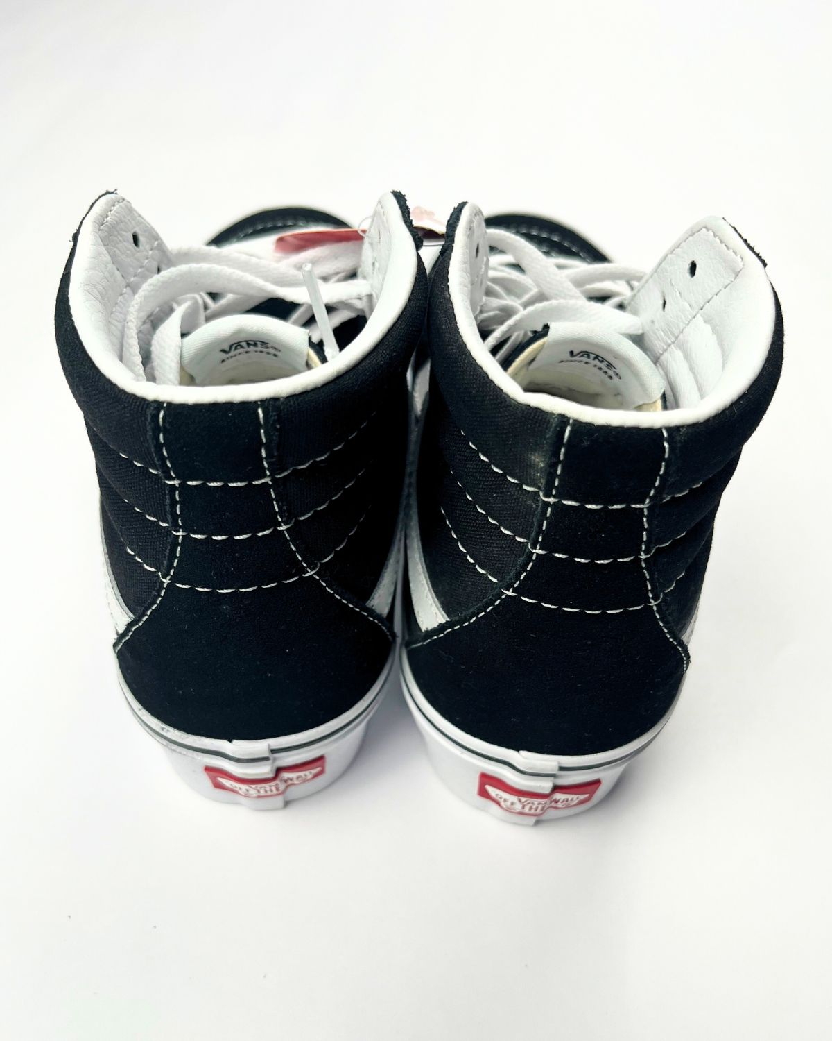 Scarpe Vans con suola alta nere e bianche, comode e resistenti con platform rialzato. Ideali per uno stile casual e streetwear, perfette per l’uso quotidiano grazie alla suola vulcanizzata e al design iconico.